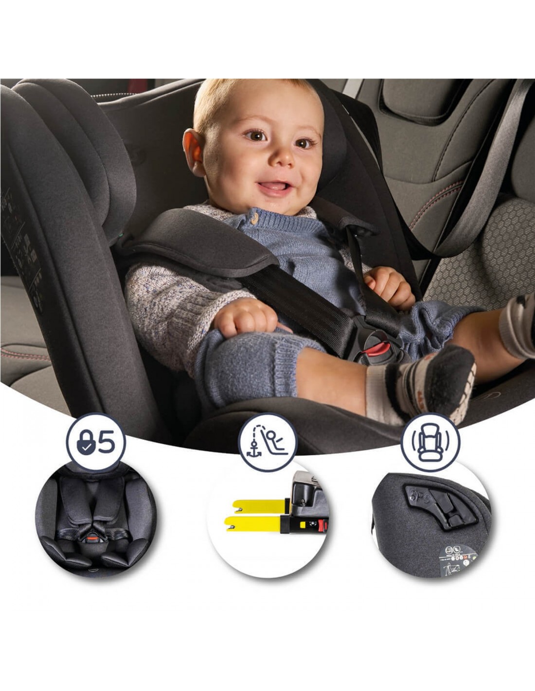 Silla de coche con estándar i-Size para máxima seguridad La silla cumple con la normativa más reciente, UN ECE R129 (i-Size), y ha sido sometida a pruebas de impacto lateral más exigentes. Esto reduce el riesgo de lesiones en la cabeza, cuello y hombros, proporcionando una protección superior durante cada trayecto. Silla evolutiva para crecer con tu hijo Esta silla de coche multigrupo es apta para niños desde 40 hasta 150 cm (0 a 36 kg).
